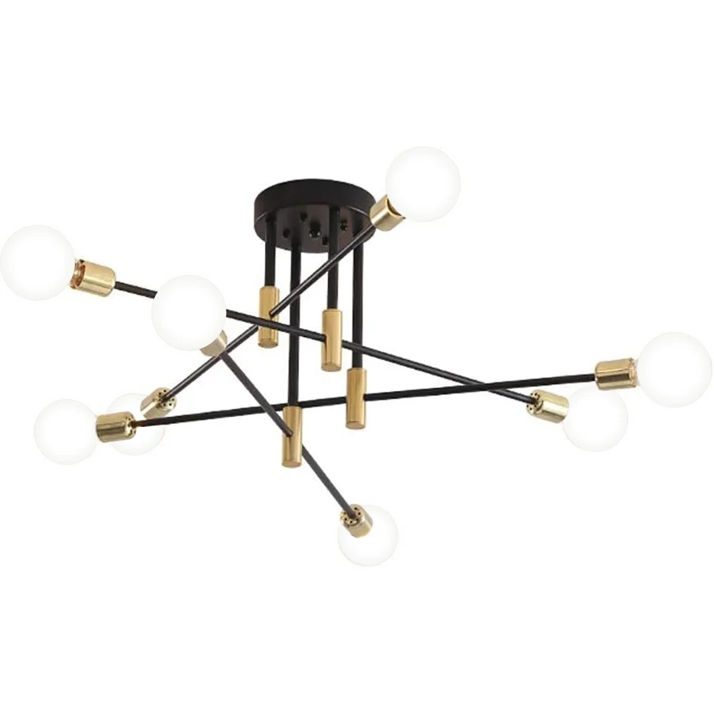 - - Moderne Deckenleuchte mit elegantem Design - 360°-Lichtverteilung für gleichmäßige Beleuchtung - Kombination aus Mattschwarz und Gold - 8 E27-Fassungen für bevorzugte Leuchtmittel - Maße: 103 x 39 cm, Aufbaumontage - Material: Aluminium
