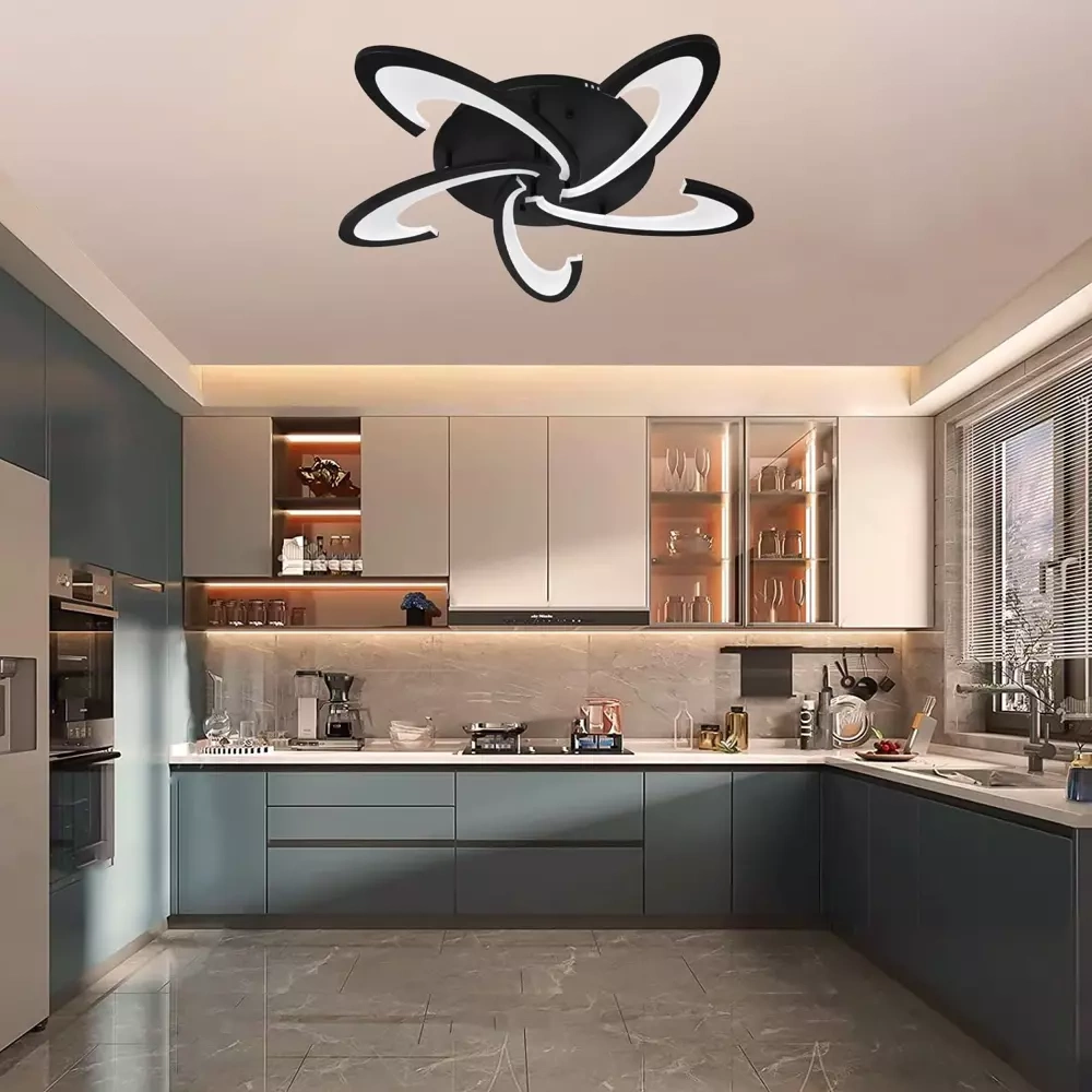 • - Moderne Deckenleuchte mit fünf Designerköpfen. - Elegantes Design und gleichmäßige Lichtverteilung. - Drei Lichtfarben, die sich an die Tageszeit anpassen. - Perfekt für verschiedene Innenräume, einschließlich Wohnzimmer, Schlafzimmer, Büro. - Fernbedie