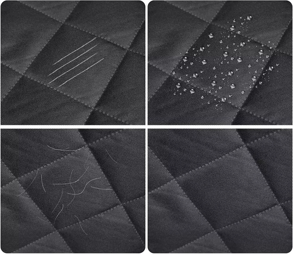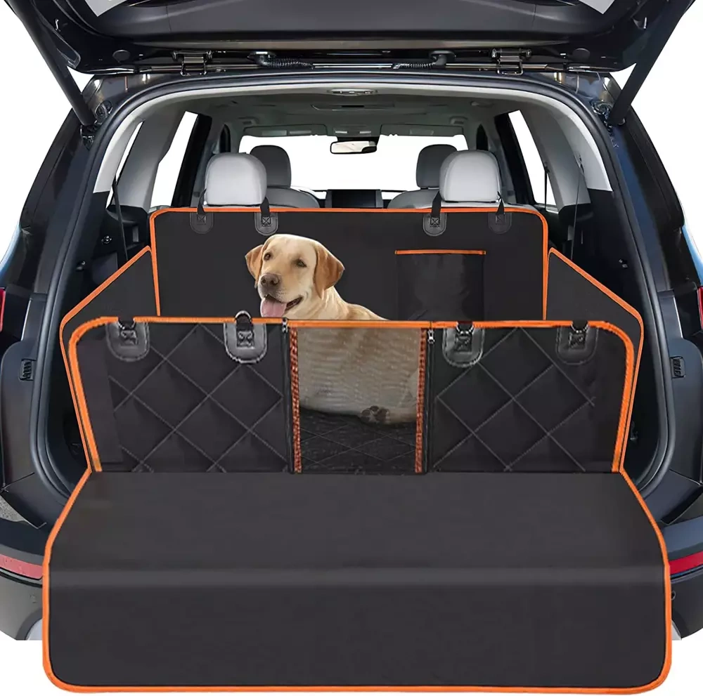 - Das speziell verlängerte Ende der Abdeckung schützt die hintere Stoßstange des Autos vor Kratzern, die beim Ein- und Aussteigen des Hundes entstehen können.