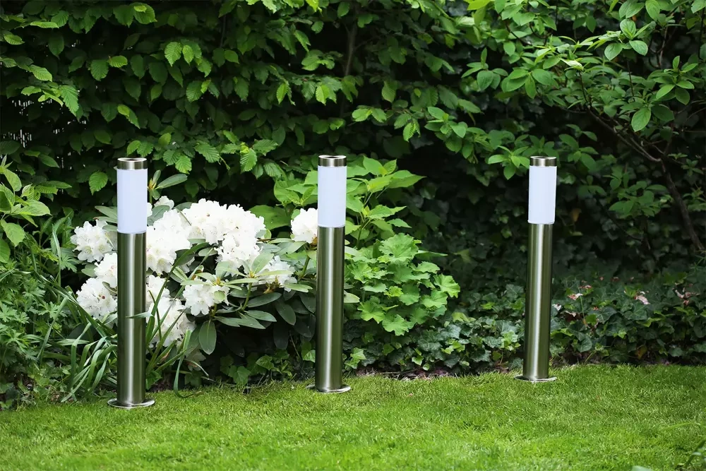 Garten Stehleuchte, runder Sockel für E27 Glühbirne | 230V Stromversorgung, Edelstahl | Inox, 65cm | LLR-65CM