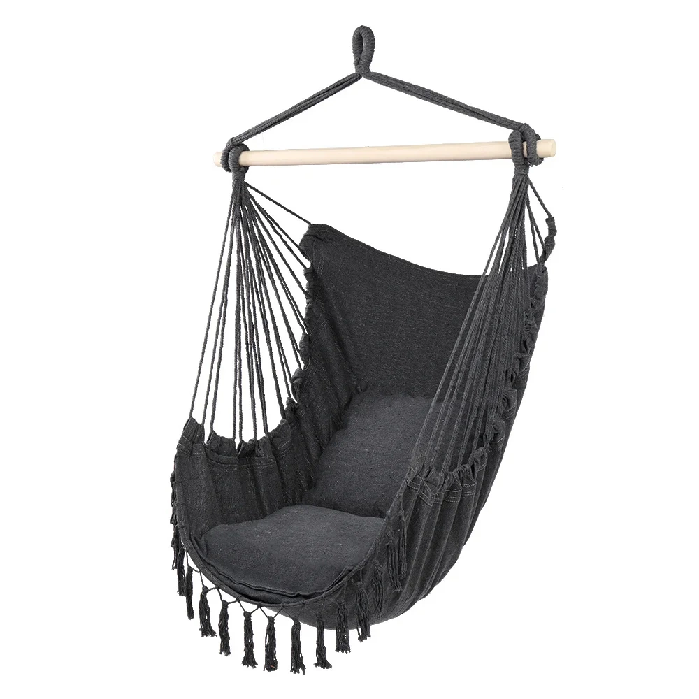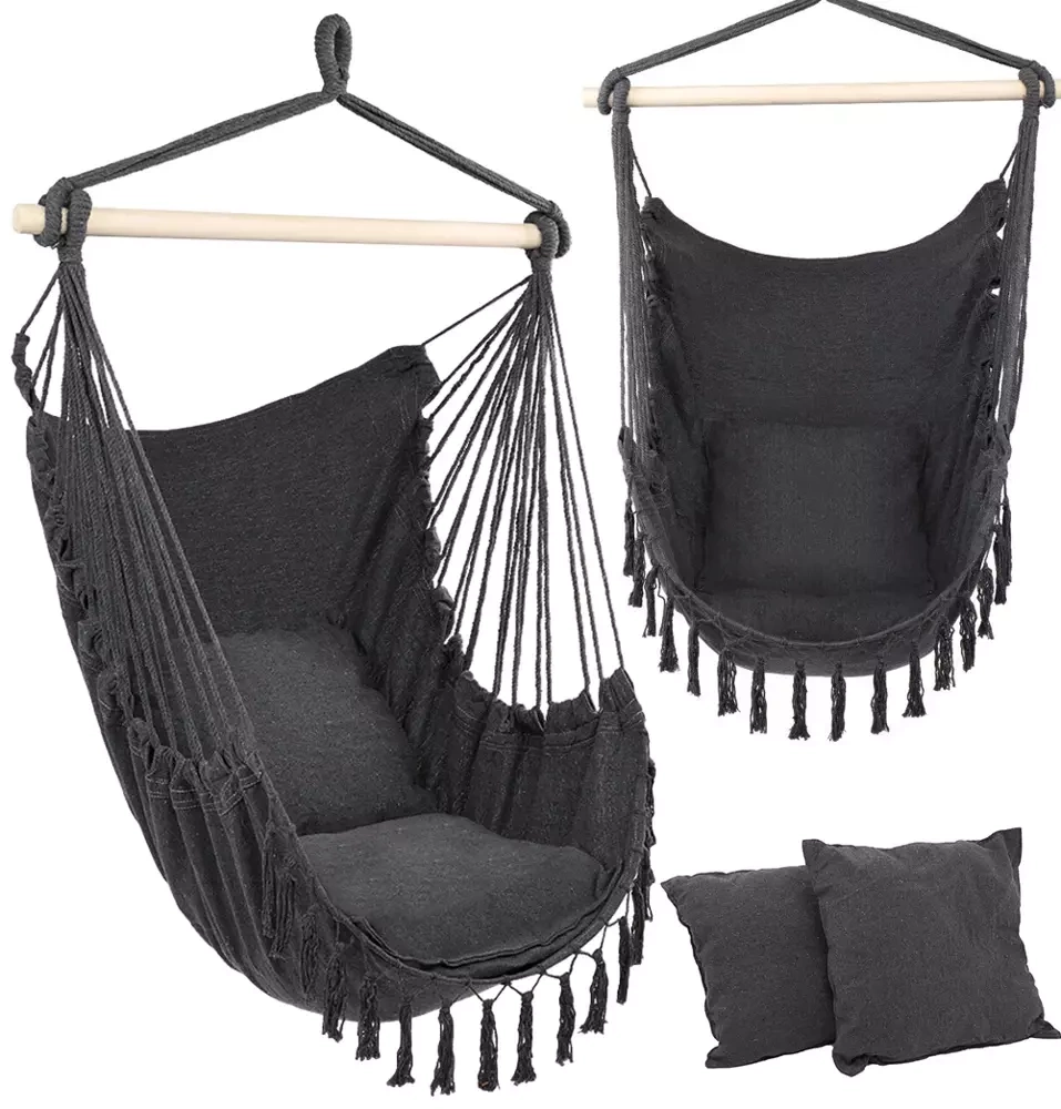 Hängesessel | 2 Kissen, Holzstange, bis 120 kg | graphit | ZY-V004