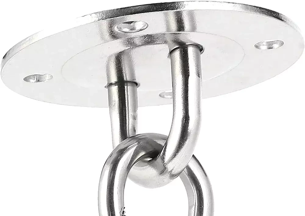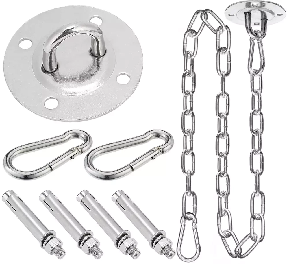 Montageset für Hängesessel, Schaukeln, Hängematten | Halterung, Kette 1,5 m, 2x Karabiner, 4x Dübel | ACS-08-silber