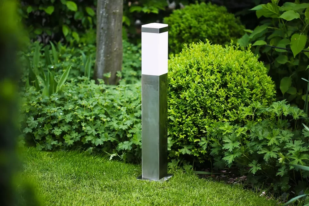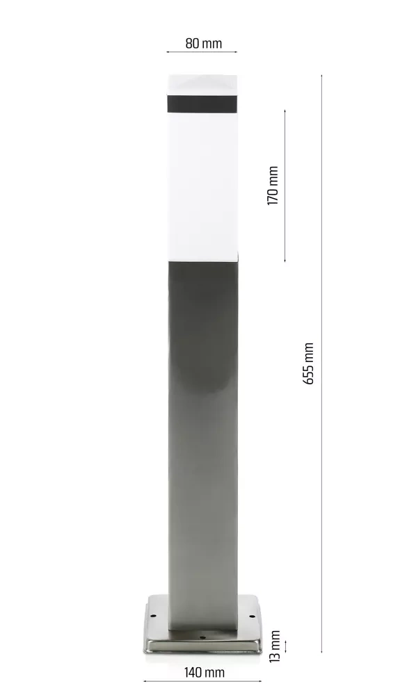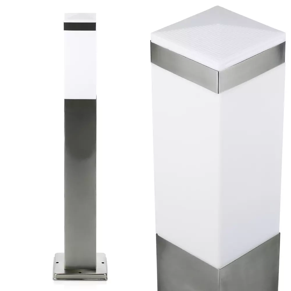 Gartenleuchte Stehleuchte, quadratischer Pfosten für E27 Leuchtmittel | 65 cm, 230 V, Edelstahl | LLF-65CM