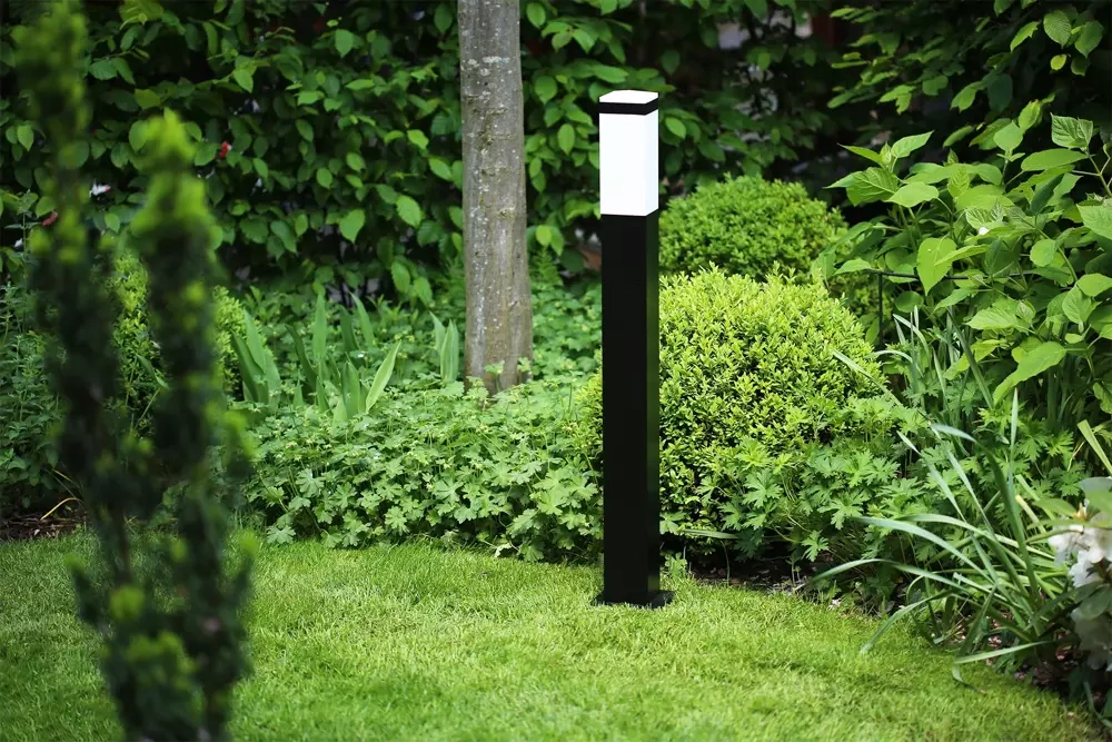 Gartenleuchte, Stehleuchte, quadratischer Pfosten für E27-Leuchtmittel | 90 cm, 230 V, Edelstahl | schwarz matt | LLF-90CM