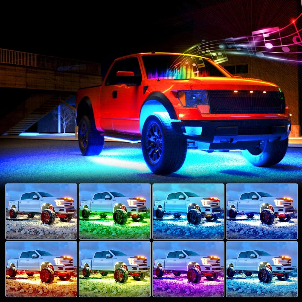 Das Unterbodenbeleuchtungs-Set eignet sich für verschiedene Fahrzeuge wie PKW, Offroad-Fahrzeuge, SUVs, Motorräder, Boote oder Anhänger. Es kann unter dem Fahrzeug, in den Radkästen oder auch im Innenraum als Ambientebeleuchtung installiert werden.
