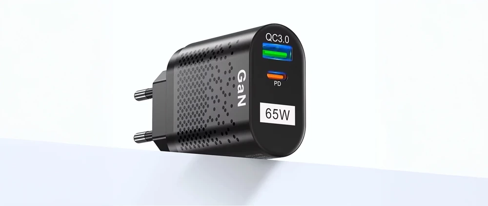 Entdecken Sie das moderne GaN-Netzladegerät 65W, das Leistung mit einem kompakten Design verbindet.