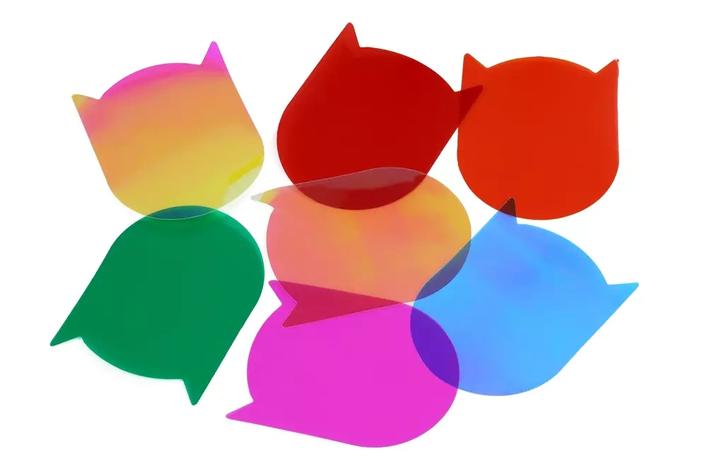 Sieben farbige Einsätze ermöglichen verschiedene Farben und Nuancen des Lichts, die auch beliebig miteinander kombiniert werden können.