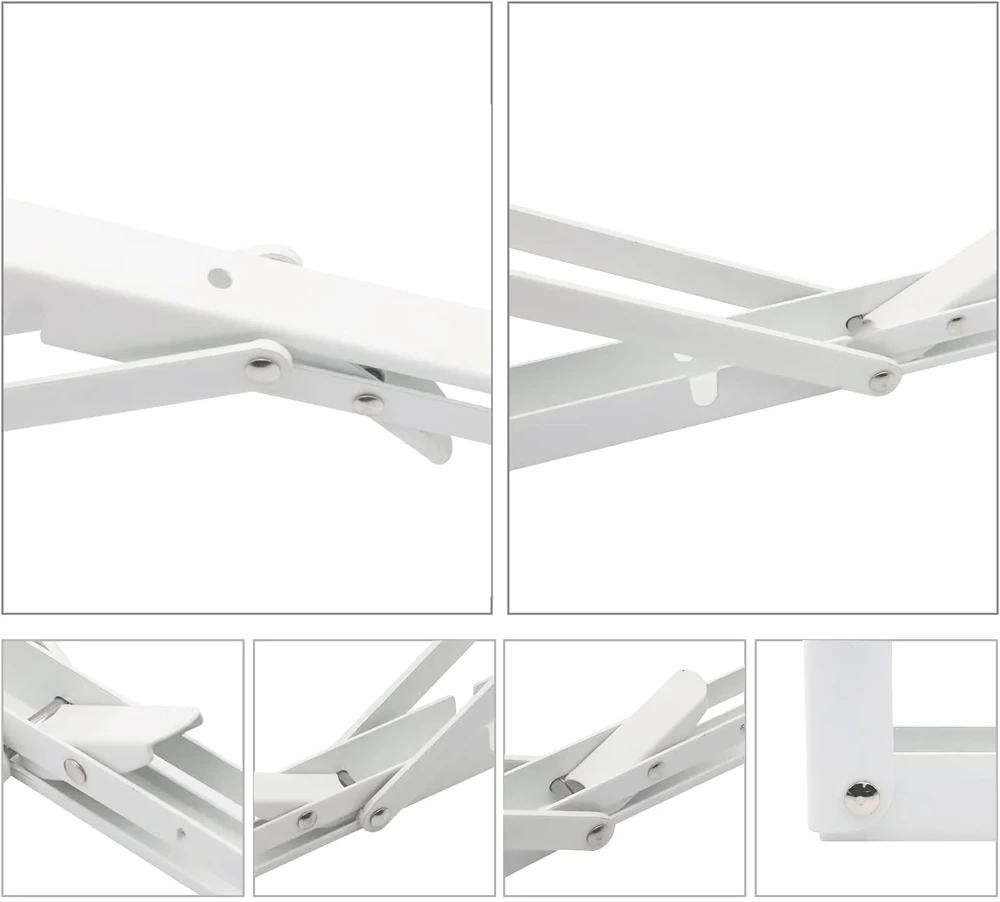 - Einfache Montage: Komplettset mit Befestigungszubehör. Zwei Befestigungslöcher an jedem Arm ermöglichen Anpassung und Flexibilität. Der Klappmechanismus mit 90-Grad-Arretierung erleichtert das Zusammenklappen des Regals und spart Platz.