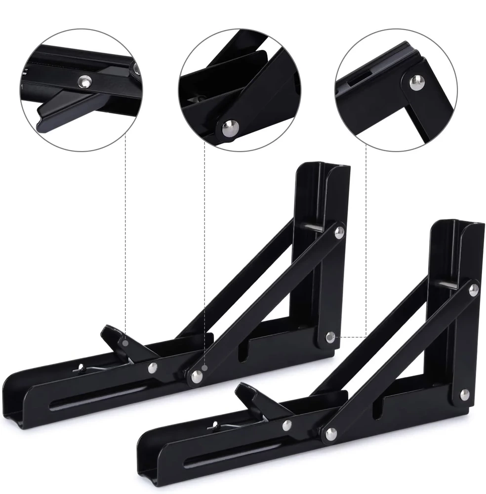 • Klappstützen sind die perfekte Lösung für begrenzte Platzverhältnisse und sorgen für Mobilität und Flexibilität. Hochwertiger Edelstahl, dreieckige Form, Tragkraft bis 60 kg, perfekt für Regale und Regale.