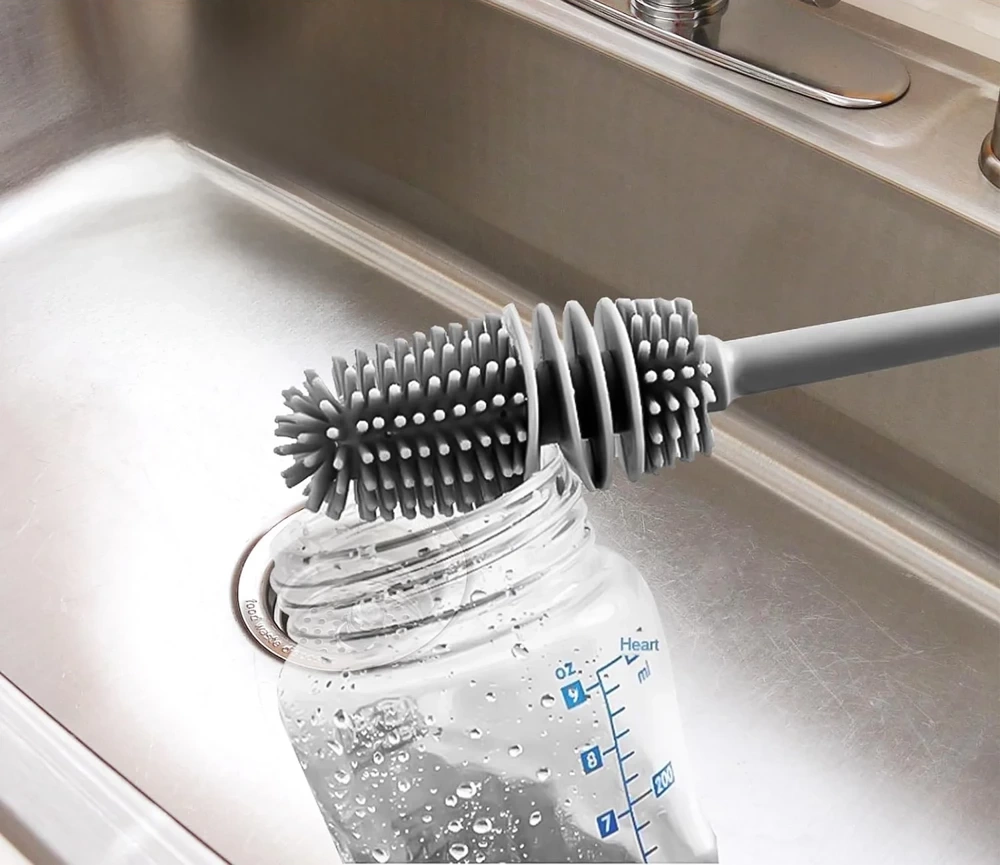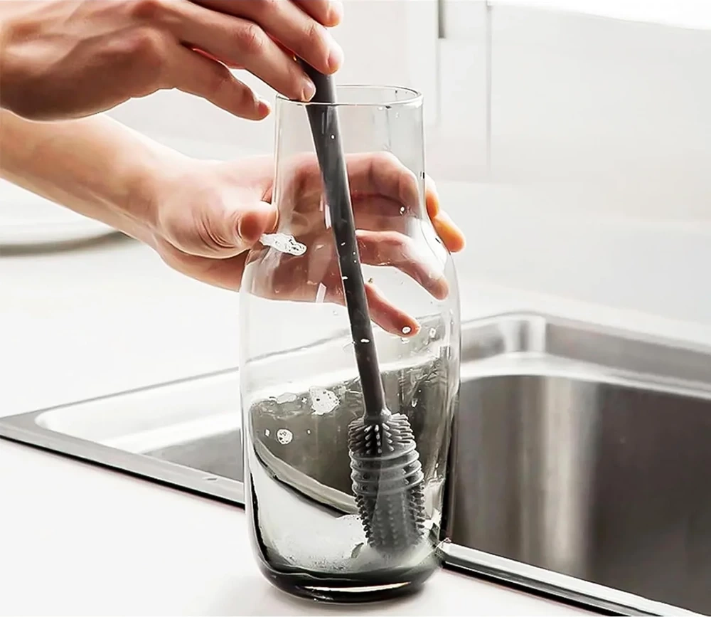 Dank der Flexibilität und Haltbarkeit der Silikonborsten ermöglicht die Bürste eine gründliche Reinigung, auch in Ecken, Glasflaschen, Gläsern, Trinkgläsern und anderen schmalen Gefäßen, ohne Kratzer oder Beschädigungen zu verursachen. Die Borsten machen sie ideal für das Spülen von unregelmäßigen Formen und schwer zugänglichen Stellen.