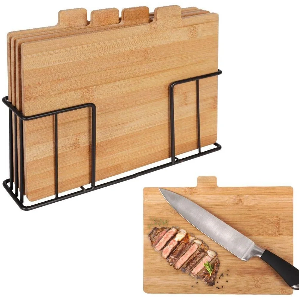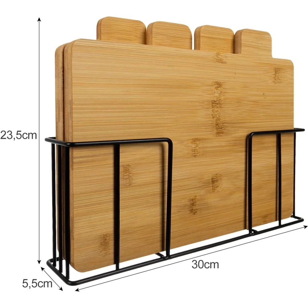 Schneidebrett-Set aus Holz und Bambus | mit Ständer | 4-in-1 Servierbrett-Set | NFS-4in1