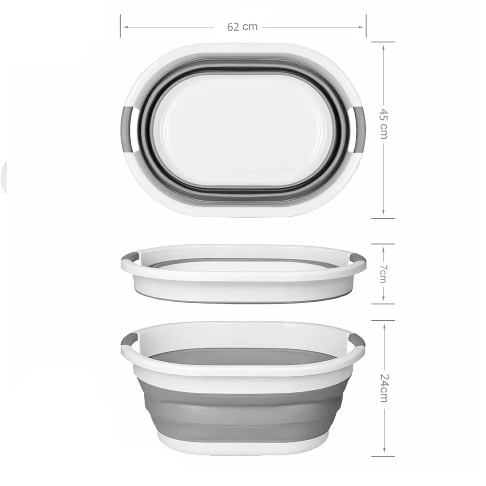 • - 40L faltbare Silikonschüssel - Praktisch und platzsparend - Multifunktional - Langlebig und widerstandsfähig - Leicht zu reinigen - Hitzebeständig - Flexibel und leicht zu drücken - Wirtschaftliche Lösung für viele Anwendungen