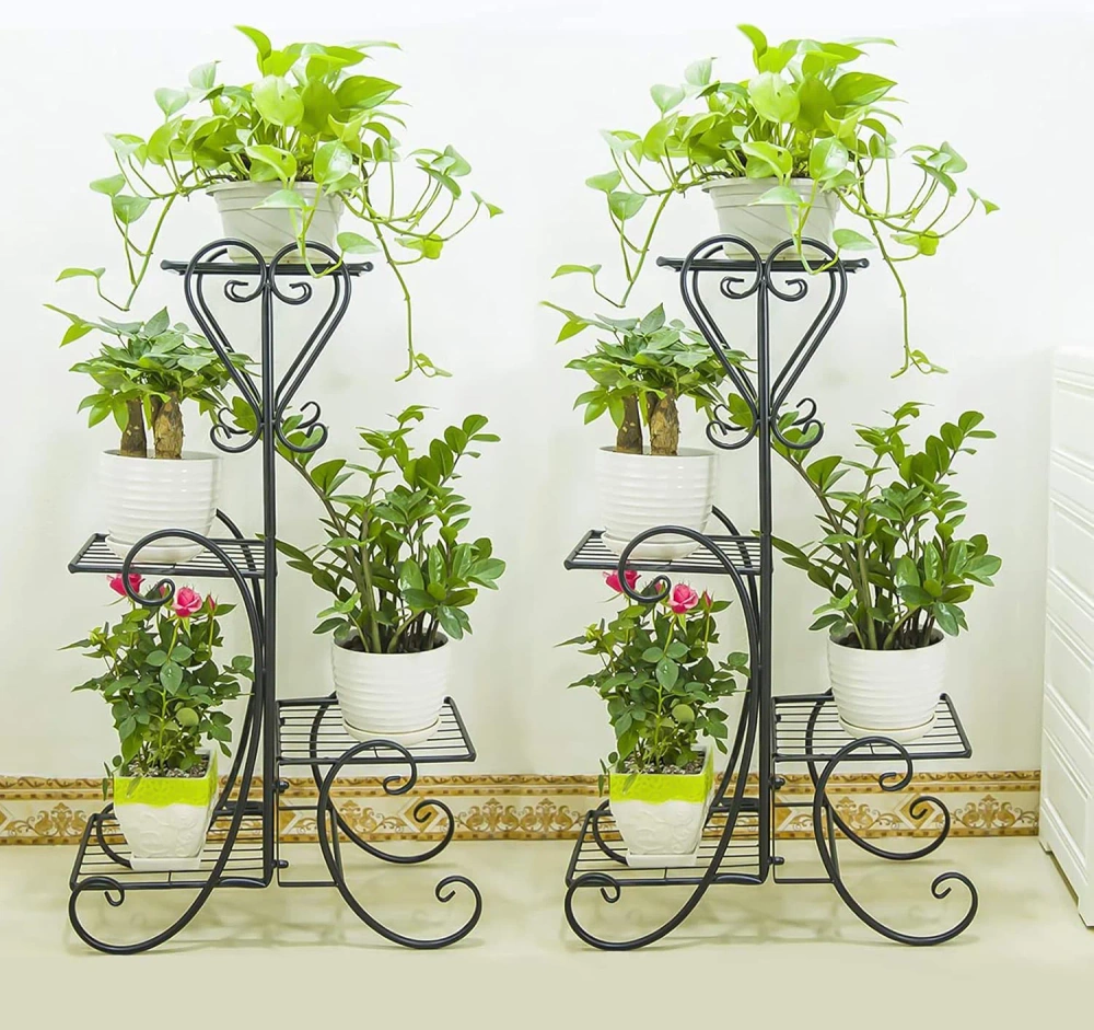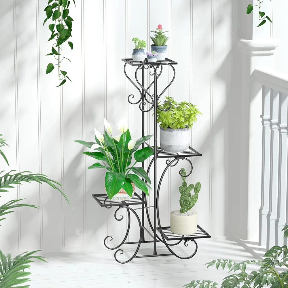 • - Blumentopfständer aus Metall mit 4 Ebenen. - Einzigartiges Design mit geschwungener Linie für Stabilität. - Robustes Eisen und nahtloses Schweißen für Langlebigkeit. - Multifunktional: Perfekt für Pflanzen, Fotos oder Schmuckstücke.