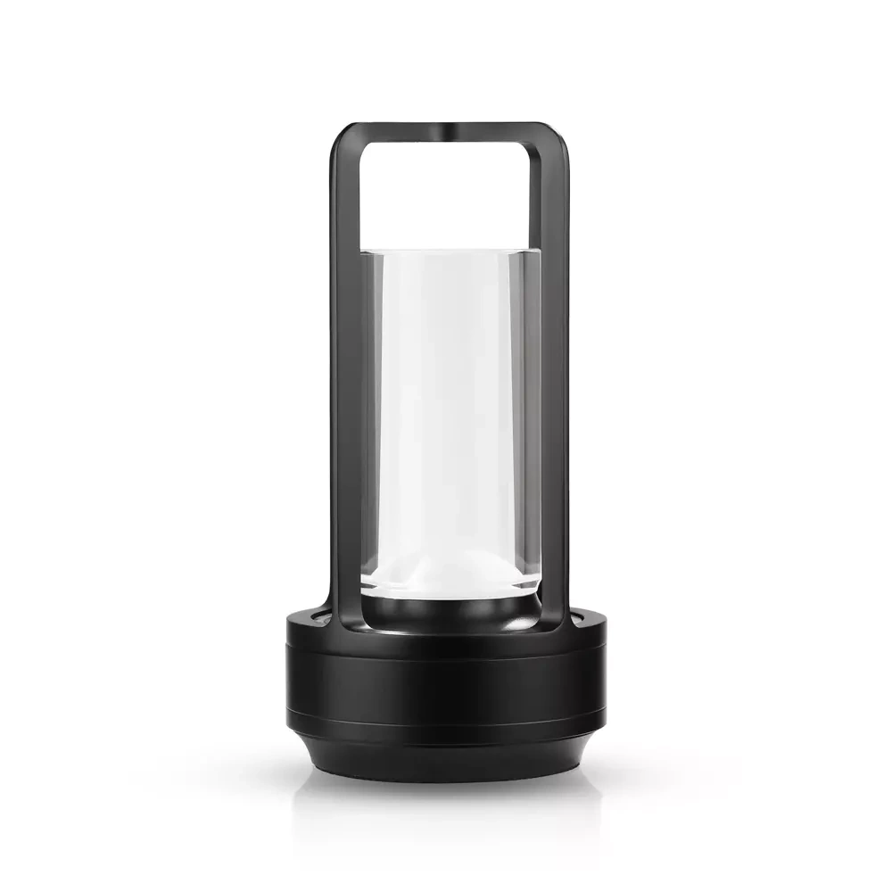 Camping-Tischlampe mit eingebautem 2000mAh Akku und Touchpanel | 3 Lichtfarben, dimmbar | Schwarz | HJA27