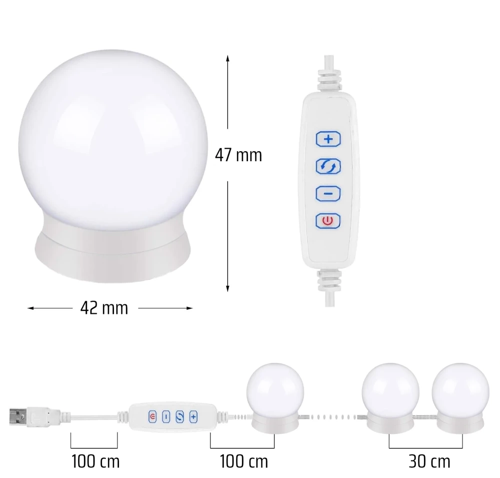 Leistungsstarke und helle LED-Dioden erhellen nicht nur jeden Schminktisch, sondern sorgen auch für optimale Bedingungen beim Schminken – zu jeder Tages- und Nachtzeit. Sie eignen sich sowohl für professionelle Anwendungen als auch für den privaten Gebrauch. Die Lampen können im Badezimmer, Schlafzimmer oder als Dekoration in jedem Raum installiert werden.
