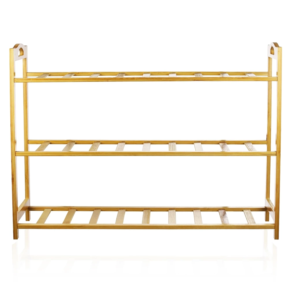 Holz-Schuhschrank | 3 Ablagen, ökologisch, stabiler Organizer für den Flur | Regal, Schuhständer | NML-685