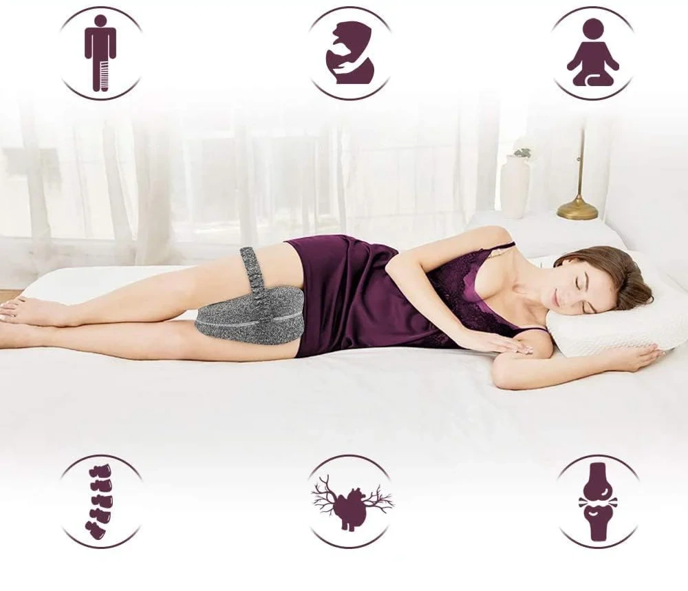 Reduziert Schnarchen und Schlafapnoe: Durch die Verbesserung der Körperhaltung kann das Kniekissen die Neigung zum Schnarchen verringern und milde Symptome der Schlafapnoe lindern, indem es eine Verengung der Atemwege verhindert.