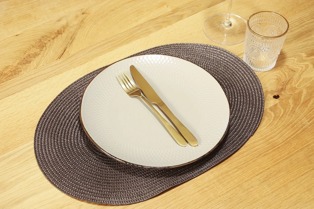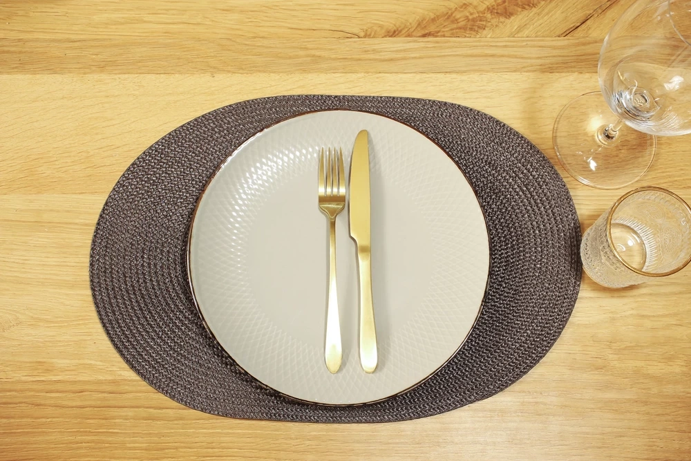 Tischunterlagen schützen nicht nur vor Kratzern und Verschmutzungen, sondern verleihen Ihrem Tisch auch Eleganz und Stil. Das klassische, geflochtene Design in Braun sorgt für eine elegante Note bei jeder Tischdekoration, unabhängig vom Anlass. Dank der Hitzebeständigkeit und der einfachen Reinigung können Sie Ihre Mahlzeiten entspannt genießen, ohne sich um Schäden am Tisch sorgen zu müssen.