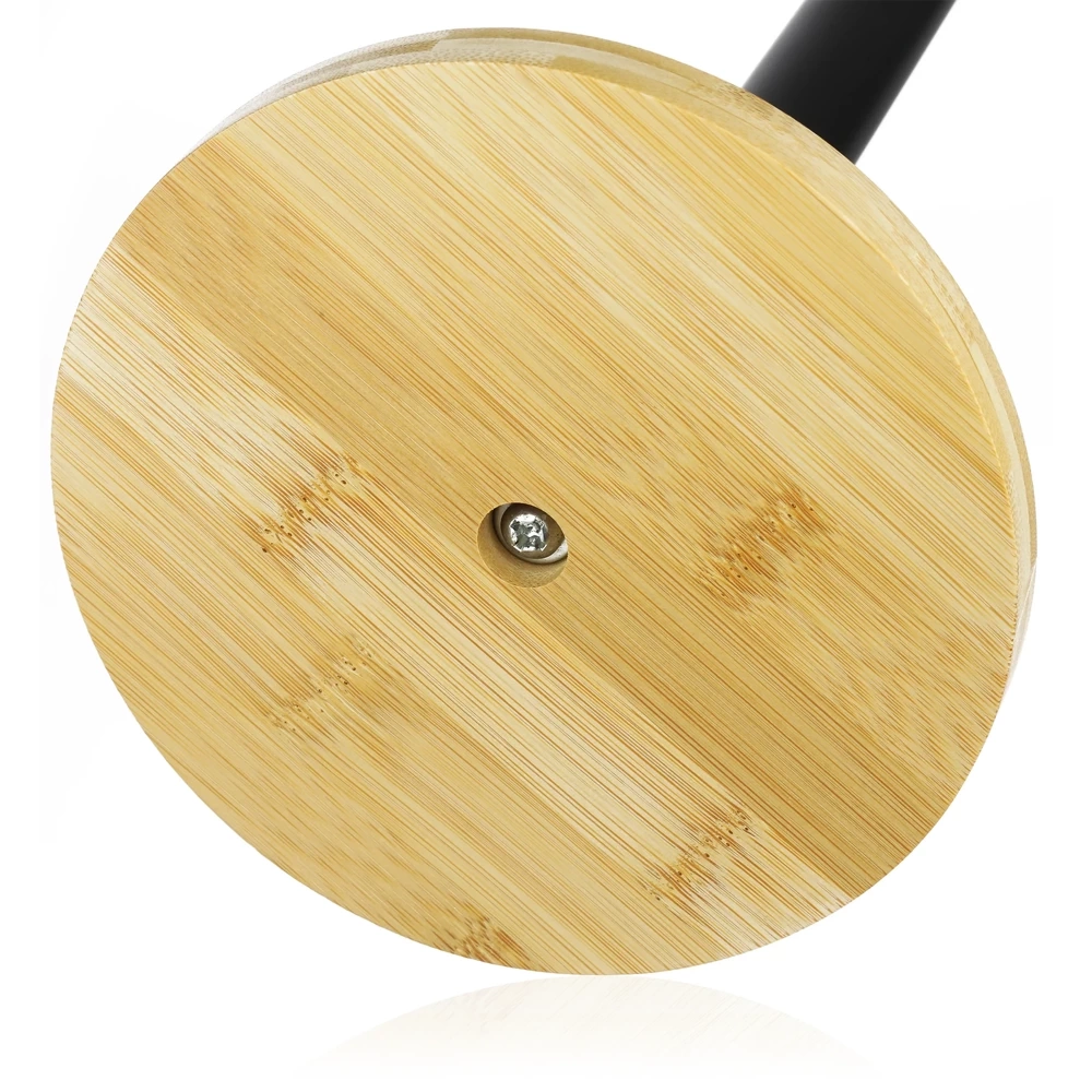 Der Ständer vereint minimalistisches Design mit Funktionalität. Sein schwarzer Metallstamm harmoniert mit der Bambusbasis und verleiht jeder Kücheneinrichtung einen eleganten Akzent.