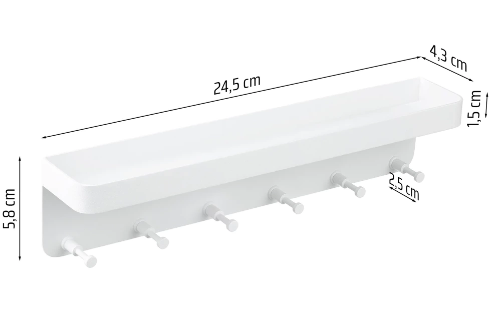Schlüsselhalter aus Metall mit Ablage | Wandgarderobe mit Haken | weiß | ZW-J26-WHITE