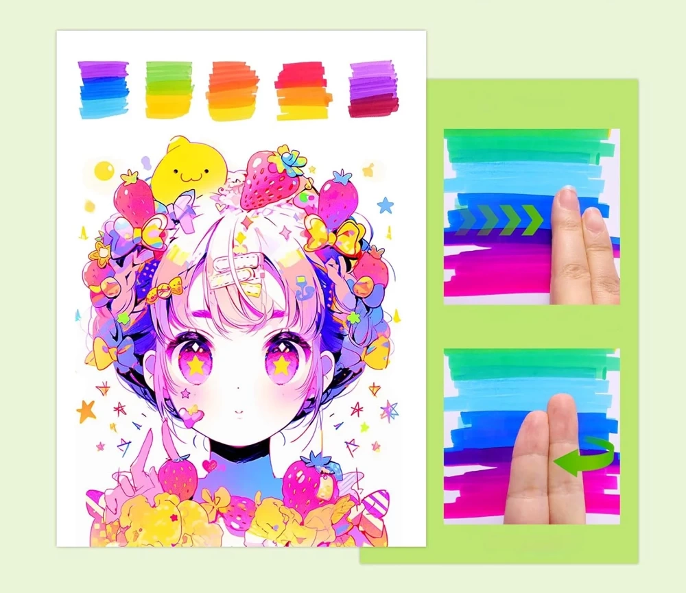 Das Markerset enthält 60 lebendige Farben, die sich mischen und übereinanderlegen lassen. So entstehen nahezu unbegrenzte Farbkombinationen. Egal, ob du Comics zeichnest, entwirfst oder malst – diese Marker sind eine hervorragende Wahl.
