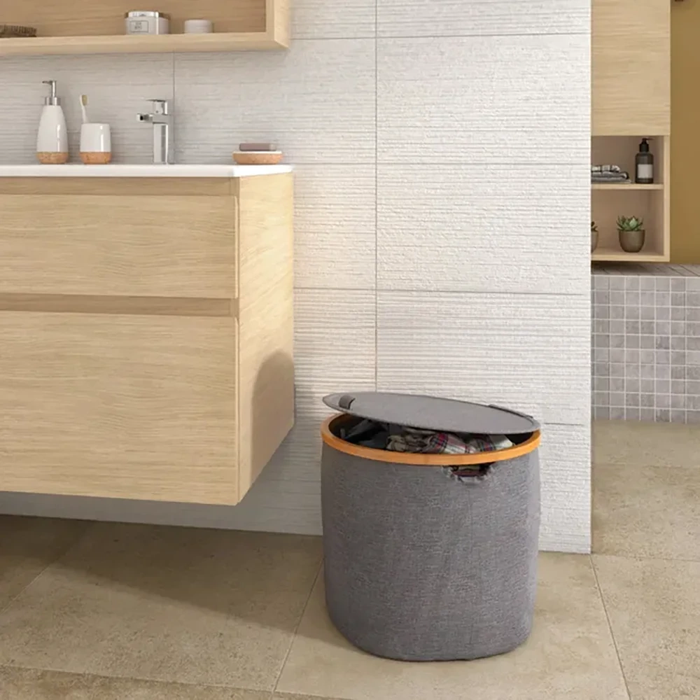 Durch die Kombination aus Oxford-Gewebe in universellem Grau und Bambus wirkt der Behälter elegant und passt zu jeder Einrichtung.