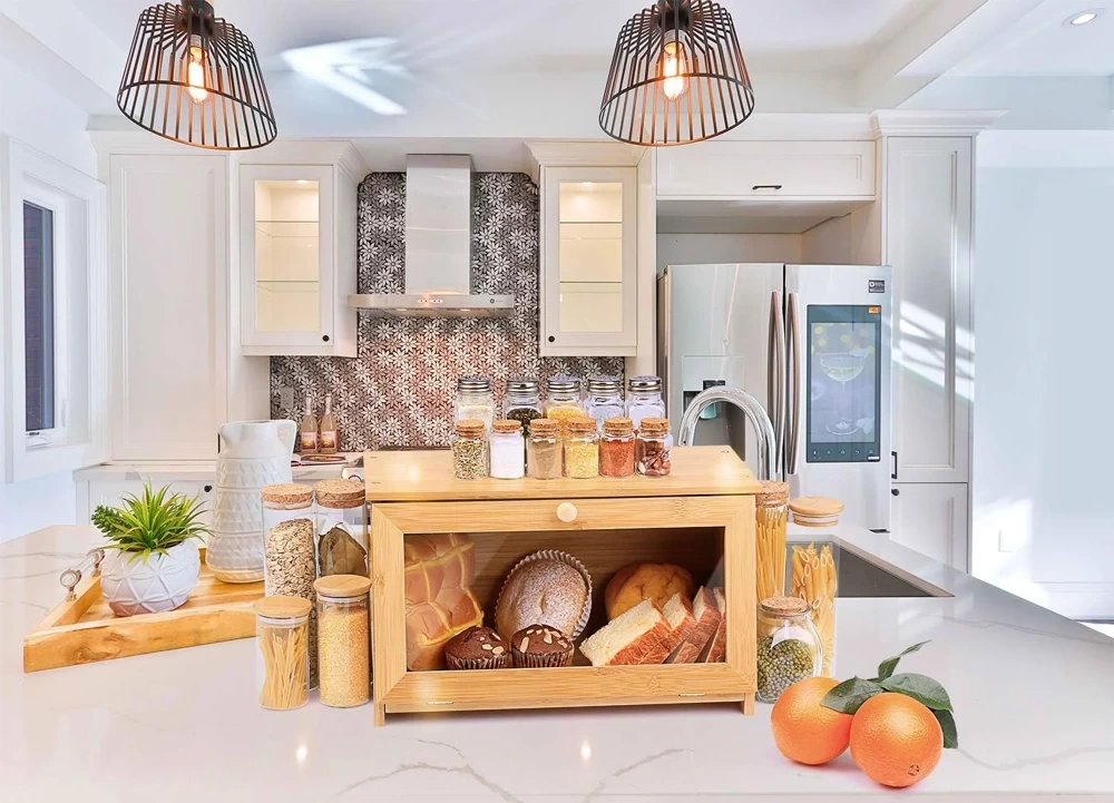 Dank der natürlichen Eigenschaften des Bambus können Sie sicher sein, dass Ihr Brot in einer sicheren, umweltfreundlichen Umgebung aufbewahrt wird. Die natürliche Feuchtigkeitsbeständigkeit und die minimalen Spalten zwischen den Trennwänden ermöglichen es dem Brot zu atmen, sodass es länger frisch und schmackhaft bleibt.