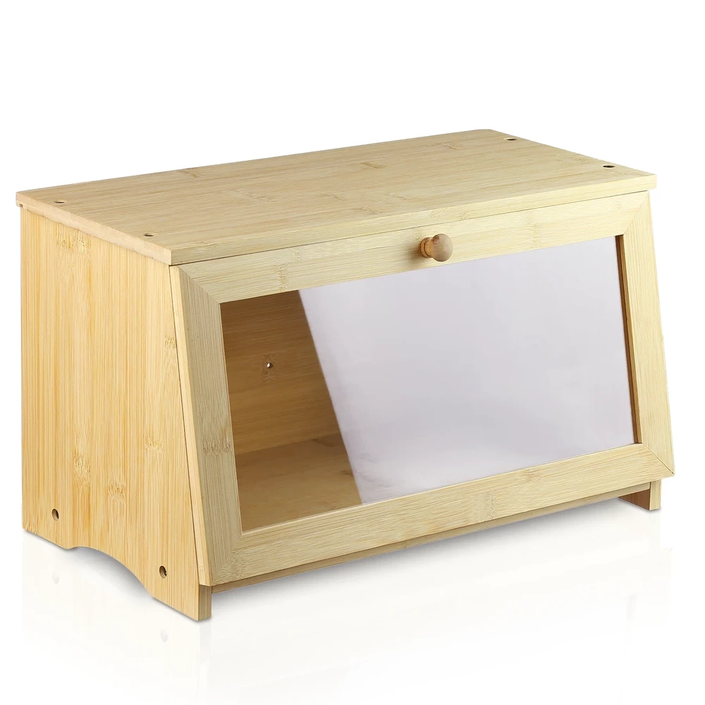 Brotkasten aus Bambus | Holzbehälter zur Aufbewahrung von Brot, Brötchen und Backwaren | Lebensmittel-Aufbewahrungsbox | FC-B023