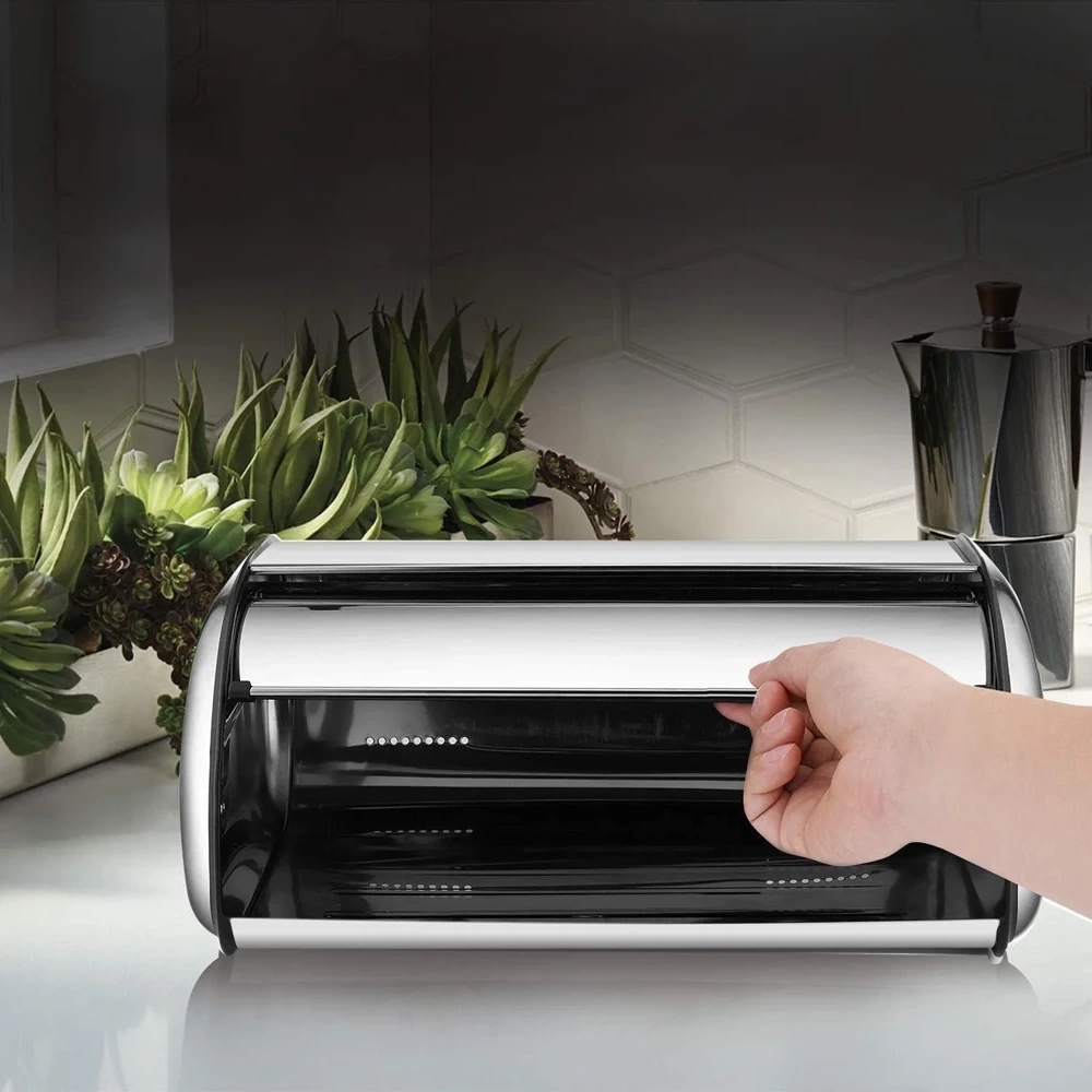 Der solide schließende Deckel sowie die seitlichen und hinteren Belüftungen sorgen für optimale Lagerbedingungen. Brot und andere Backwaren bleiben länger frisch und schmackhaft und sind vor Staub und Verschmutzung geschützt.