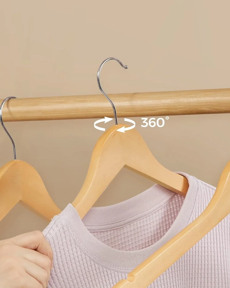 - Universelles Design: Kleiderbügel aus Holz mit drehbarem Haken, ideal zur Aufbewahrung verschiedener Kleidungsstücke.