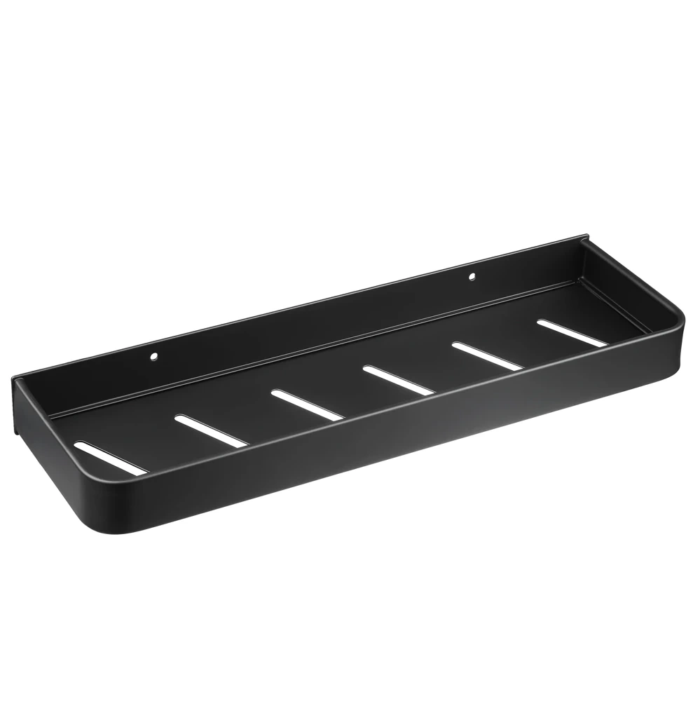 - - Ästhetisches Design: schwarzes Metall - Langlebig und feuchtigkeitsbeständig - Platzsparend in kleinen Badezimmern - Einfache Wartung und Reinigung - Installation mit Kleber oder Schrauben - Praktische Aufbewahrung von Kosmetika - Abmessungen: 40 x 12,5