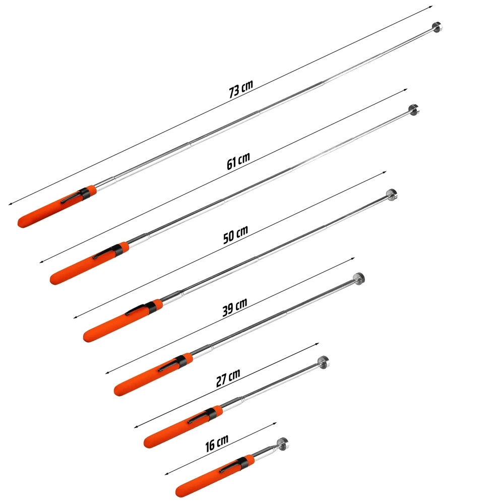 - Robustes Metall, das Rost widersteht. Rutschfester Griff für sicheren Halt. Teleskopauszug bis 73 cm. Tragbare Form mit Taschenclip. Perfekt zum Heben verschiedener Metallgegenstände.