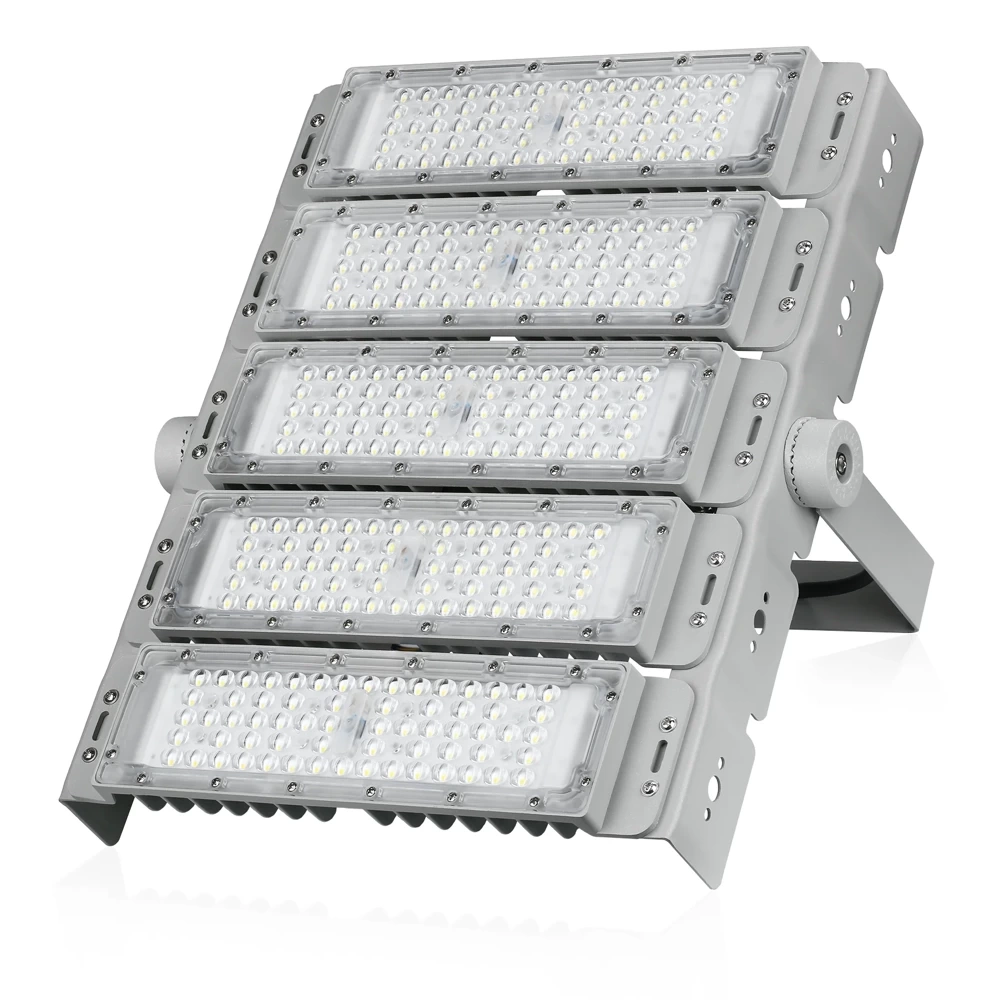 LED-Flutlichtstrahler | 250 W | für Sporthallen, Industriehallen, Wohnbereiche | Aluminiumgehäuse | mit verstellbarem Halter | TMN-250W-SILVER