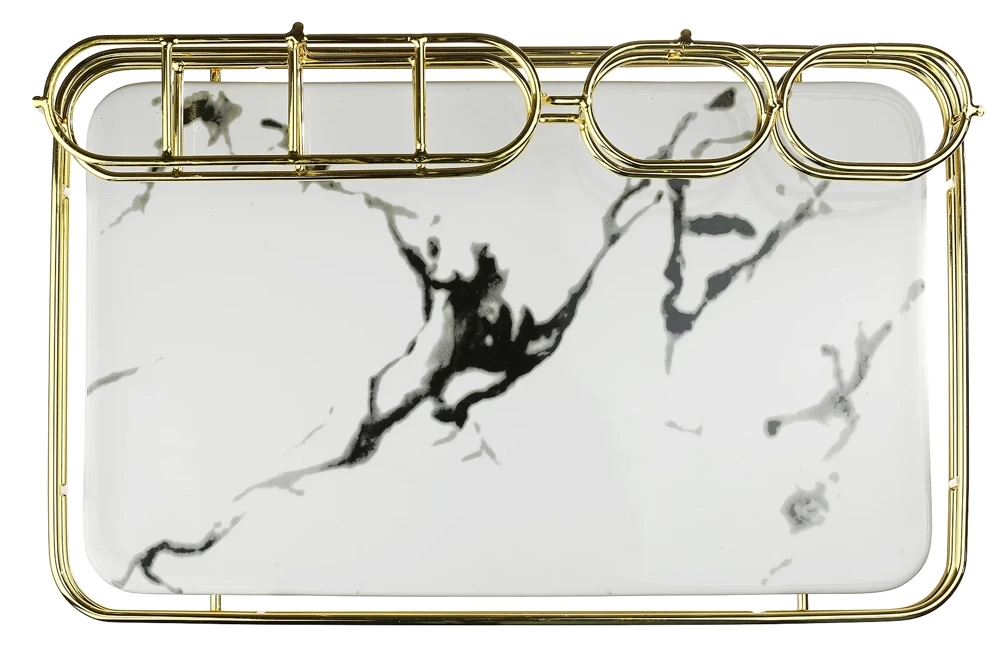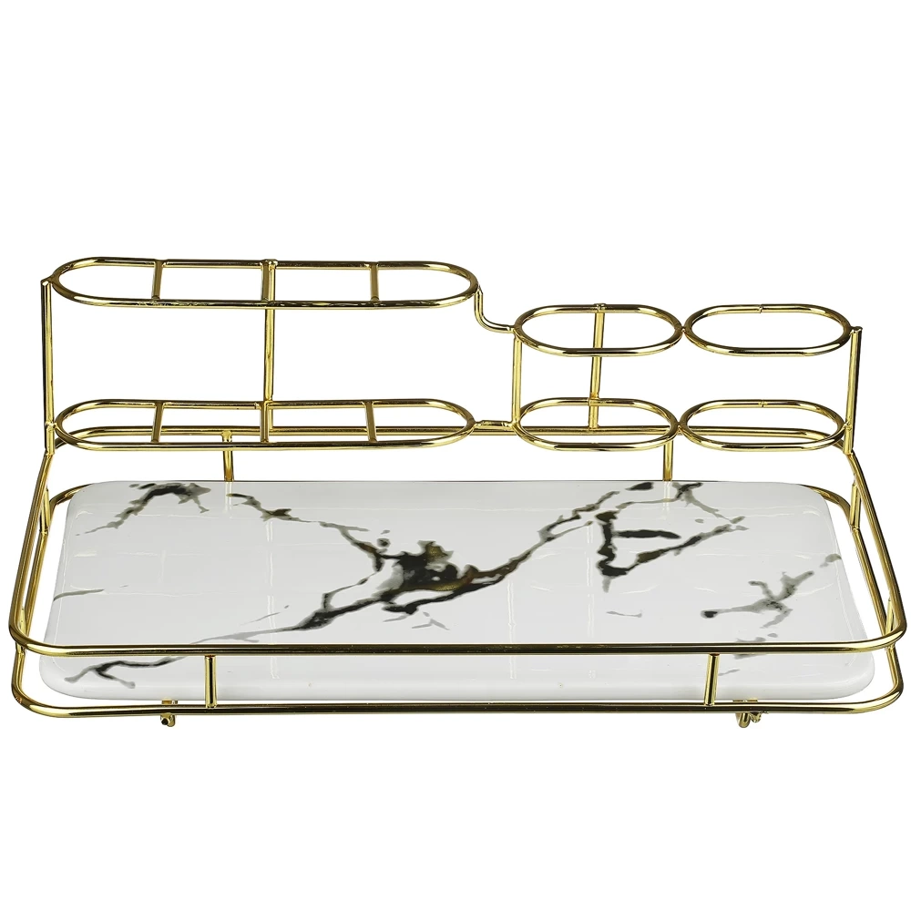 Das moderne Badezimmerregal ist ein stilvolles Accessoire mit schlichtem Design, das jedem Bad eine elegante Note verleiht. Die goldene Metallkonstruktion in Kombination mit weißem Stein sorgt für einen stilvollen Charakter, unabhängig von Raumgröße oder Einrichtung.
