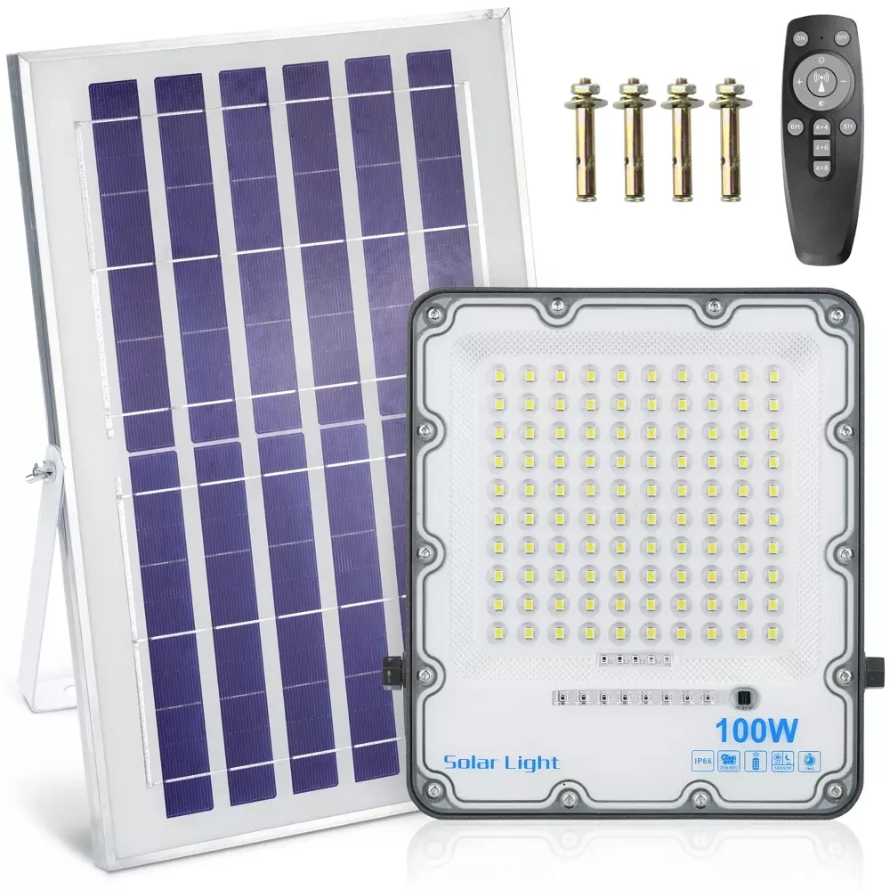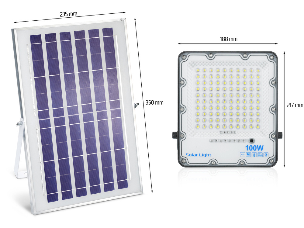 LED-Flutlicht Set | 100 W + Solarpanel 6 V/8 W mit Fernbedienung | 2.500 lm, 6.000 mAh, IP66