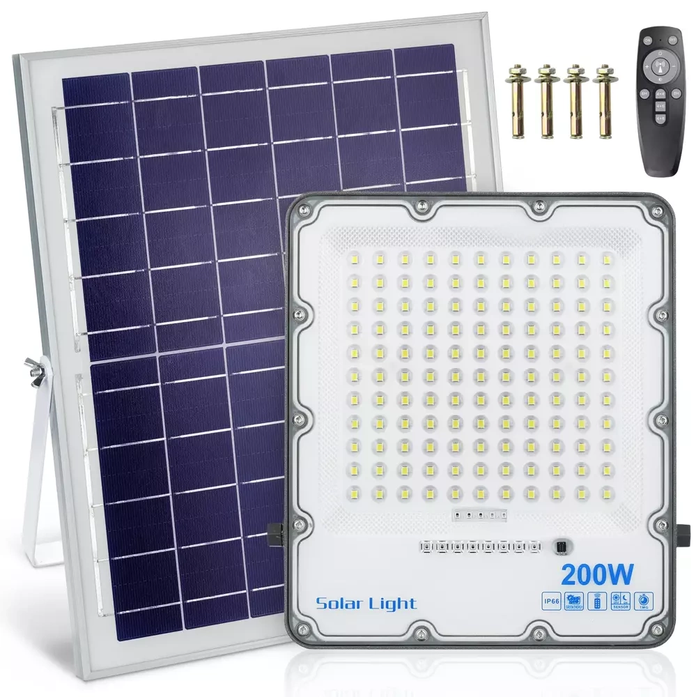 LED-Flutlicht Set | 200 W + Solarpanel 6 V/12 W mit Fernbedienung | 3.500 lm, 9.000 mAh, IP66
