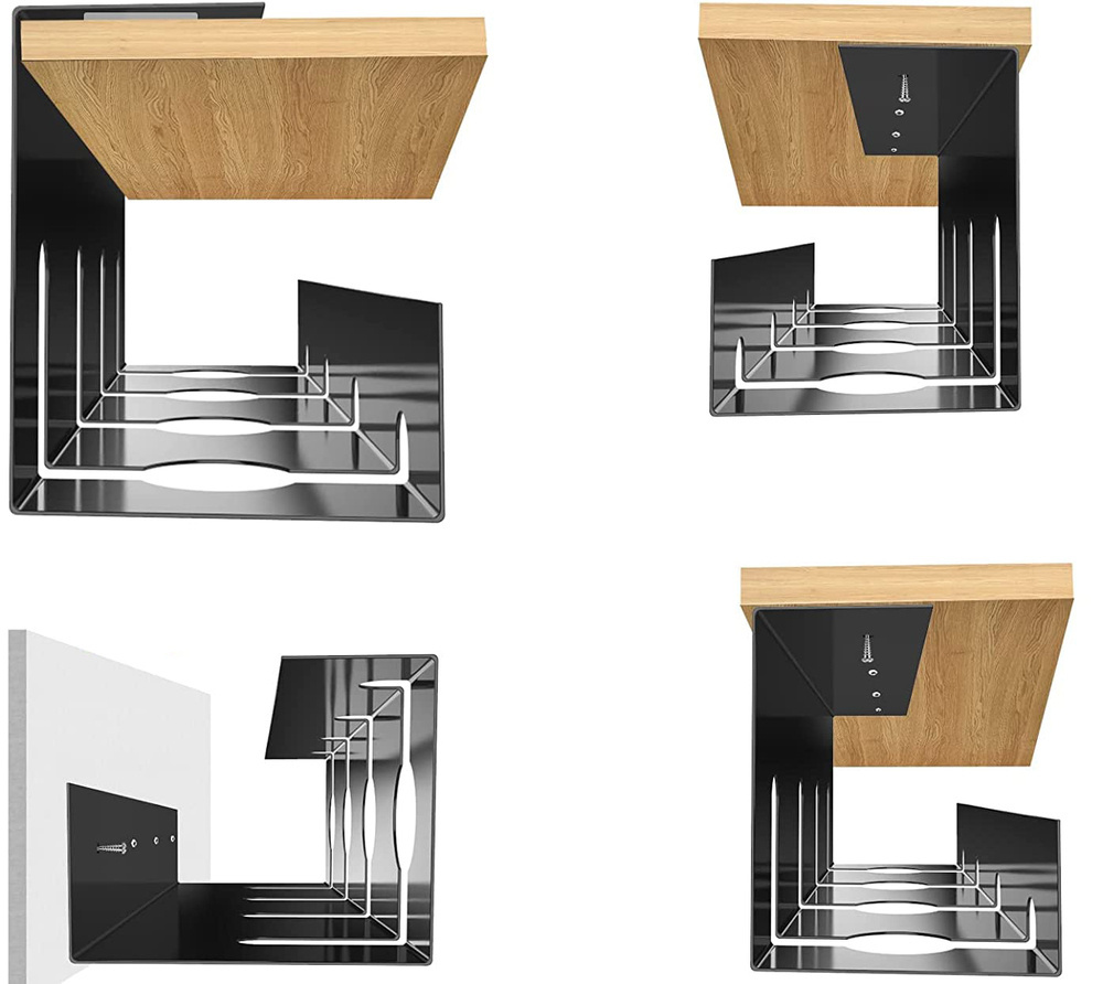 Vielseitiger Organizer in Form eines Korbs / einer Führung, die unter der Tischplatte montiert wird. Er eignet sich hervorragend zur Aufbewahrung von Steckdosenleisten und zur Organisation von Kabeln und Leitungen zu Hause, im Büro oder im Lager.