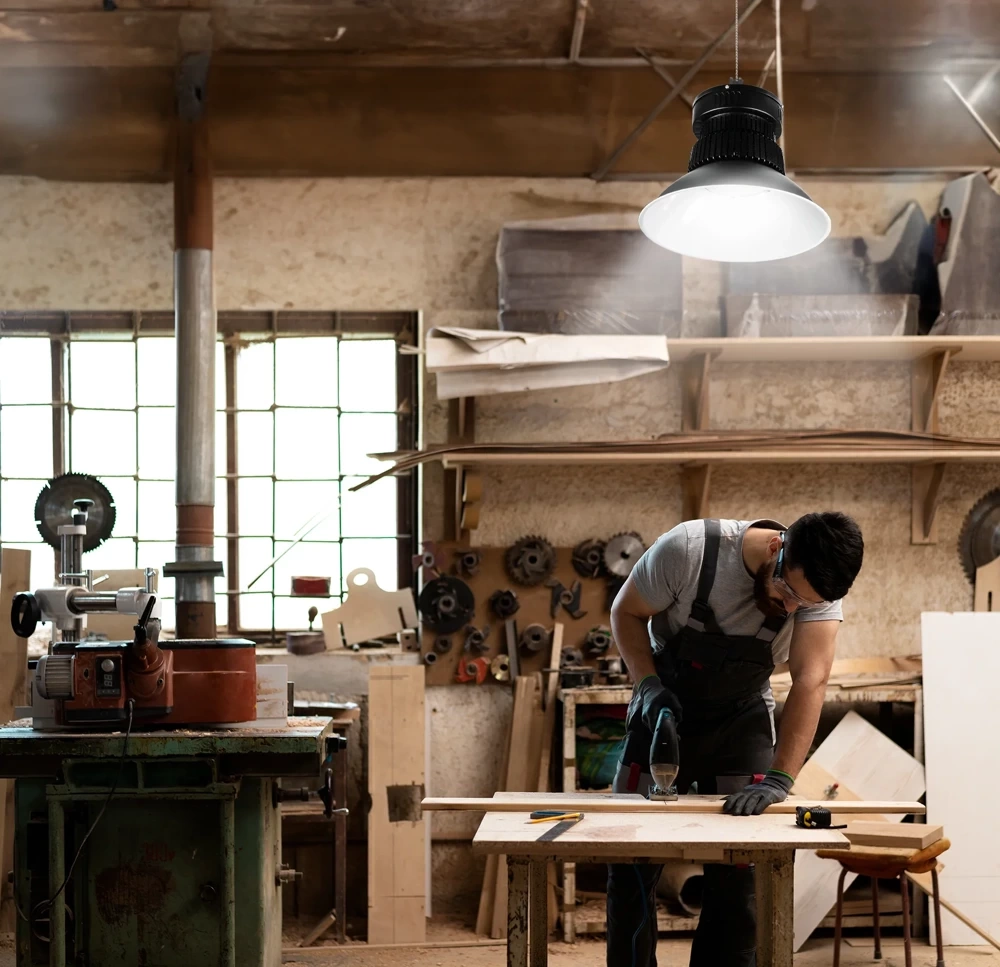 Energiesparende Lampe für die Beleuchtung von Industrieflächen. Ideal geeignet für: