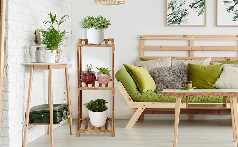 Der Pflanzenständer besteht aus umweltfreundlichem naturbelassenem Holz, das sorgfältig verarbeitet wurde. Dadurch wirkt das Produkt elegant und die stabile Konstruktion sorgt für eine lange Nutzungsdauer.