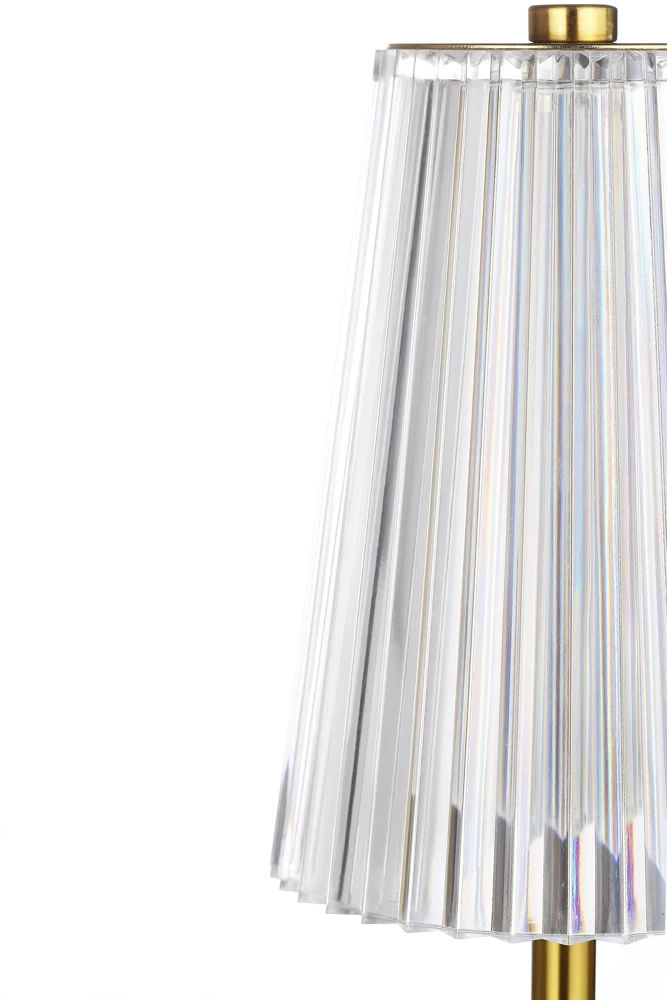 Das Metallgehäuse mit schöner goldener Oberfläche und der schimmernde Lampenschirm mit Kristall-Effekt unterstreichen das elegante Aussehen der Lampe. Der Touch-Knopf an der Lampenbasis dient zur Steuerung: Damit kann das Gerät eingeschaltet sowie die Lichtfarbe und -intensität verändert werden.