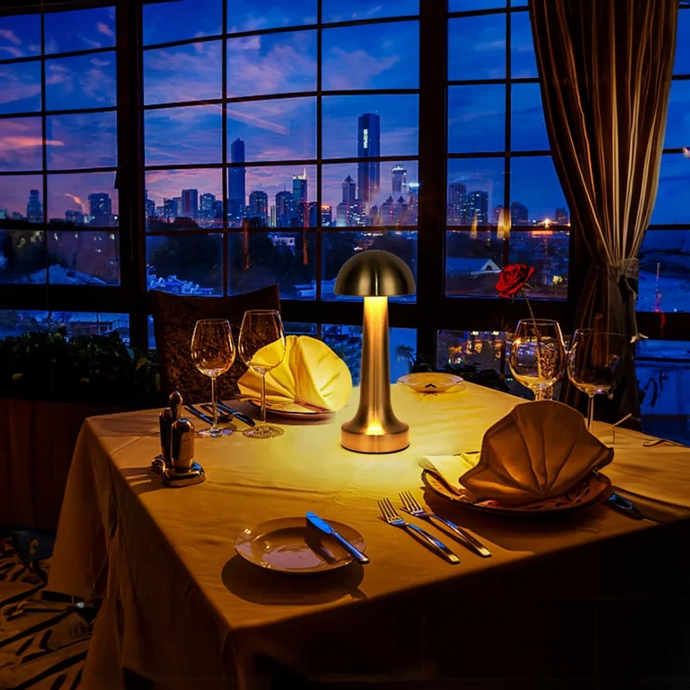 Der integrierte Akku und das sanfte Licht machen die Lampe auch zur idealen Beleuchtung für Restauranttische. Sie sorgt für eine romantische Atmosphäre und schafft unvergessliche Momente.