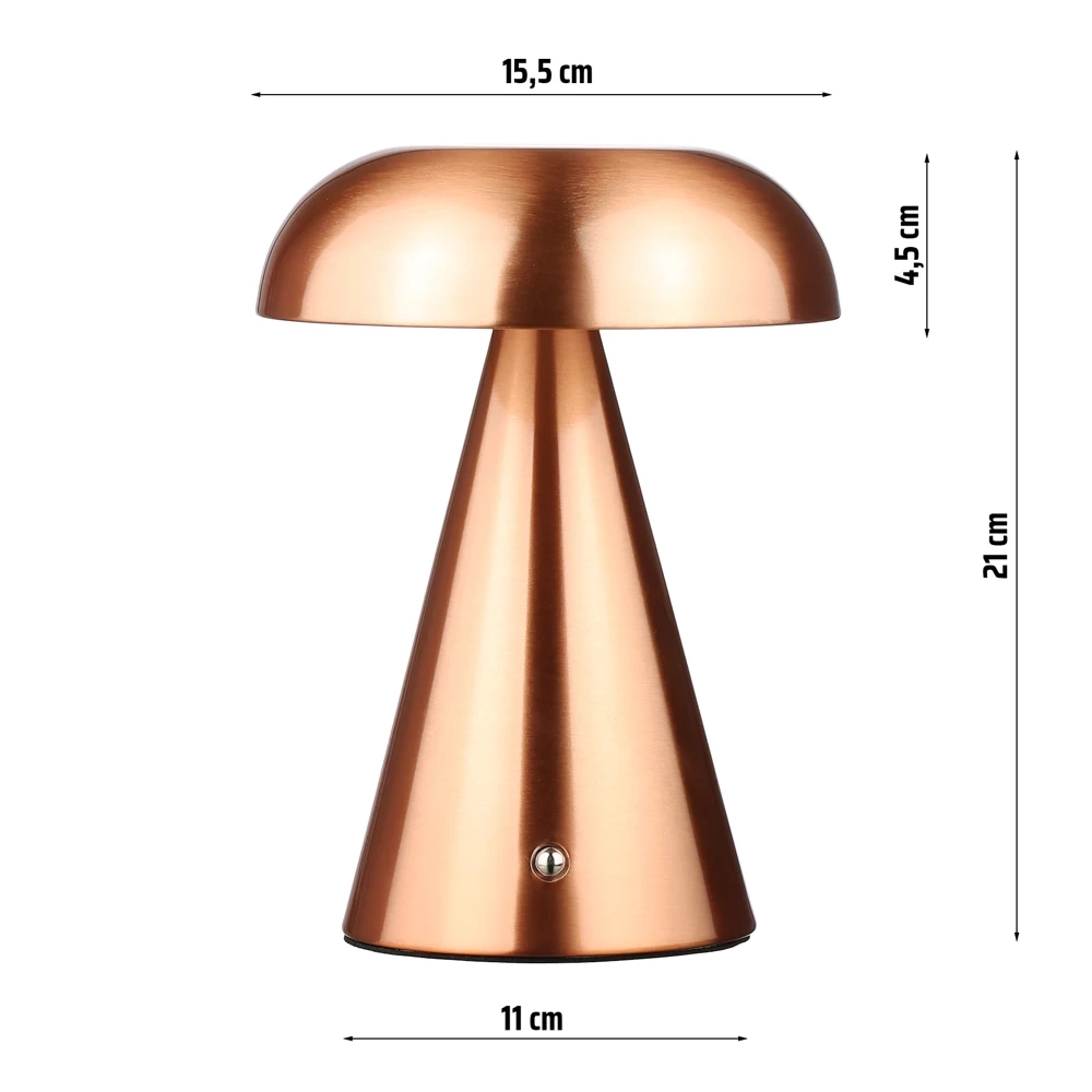 LED-Tischleuchte mit integriertem Akku | Nachttischleuchte mit drei Lichtfarben | Stimmungslicht für Hotel, Restaurant | HJA24-copper