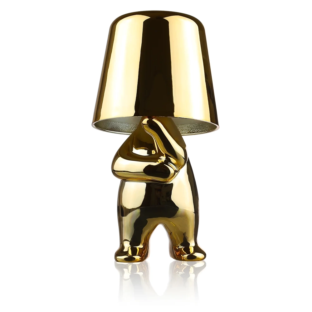 Hochwertige Materialien und ein goldenes Finish unterstreichen das elegante Aussehen der Lampe. Auf der Oberseite des Lampenschirms befindet sich ein Touch-Panel, mit dem Sie das Gerät ein- und ausschalten sowie den Modus und die Helligkeit ändern können.