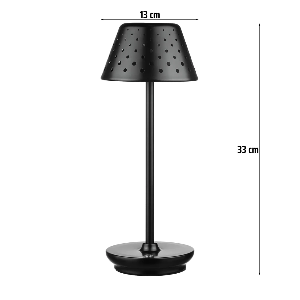 LED-Tischleuchte mit integriertem Akku | Nachttischleuchte mit drei Lichtfarben | Stimmungsleuchte für Hotel, Restaurant | schwarz | HJA15-BLACK
