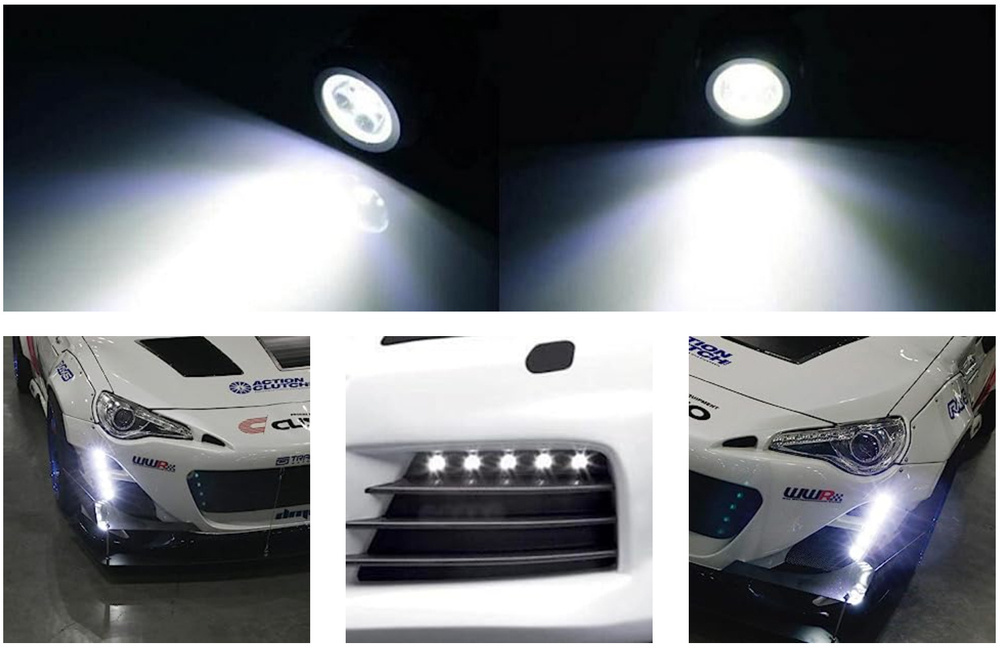 - mit vollständiger E4 RL00 0087-Zulassung, die auf dem Lampenschirm jedes LED-Punkts eingeprägt ist. Es ist ein völlig legales, straßenzugelassenes Autobeleuchtungselement.