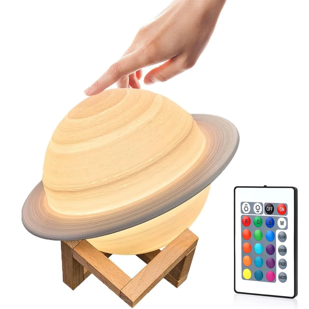 Die besondere Saturn 3D Nachtlampe ist nicht nur eine Lichtquelle, sondern bringt auch eine magische Atmosphäre in jeden Raum. Mit dem Touch-Schalter und der Fernbedienung können Farben und Leuchtmodi einfach gewechselt werden, um ideale Bedingungen zum Schlafen, Entspannen oder Arbeiten zu schaffen.