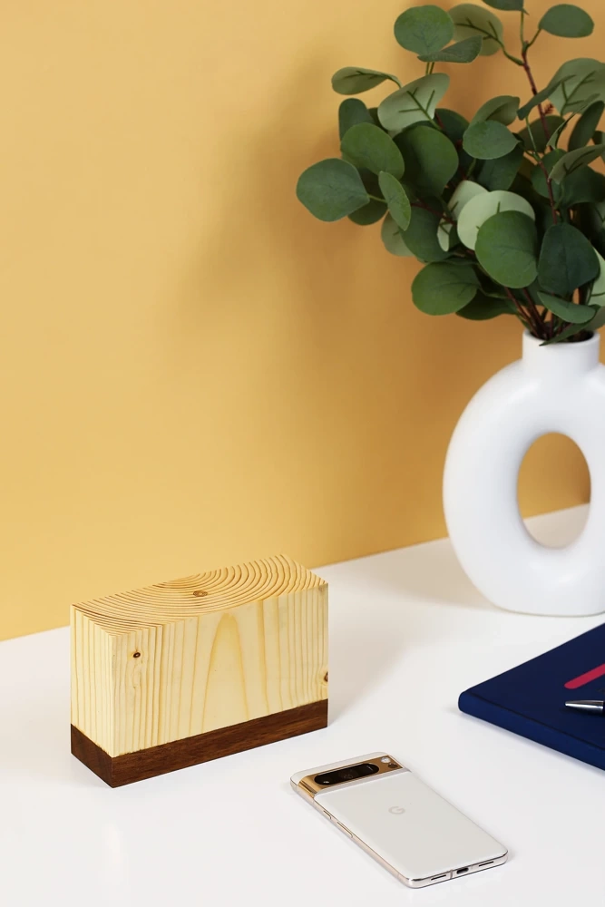 Die Lampe wurde mit Blick auf Natürlichkeit und Ästhetik gestaltet. Das Gehäuse aus Holz verleiht ihr einen besonderen Charakter, während das minimalistische Design dafür sorgt, dass sie sich in viele Räume einfügt. Das einfache Laden über den USB Typ-C-Anschluss und der leistungsstarke Akku machen sie zu einer praktischen Beleuchtungslösung für jedes Zuhause und mehr.
