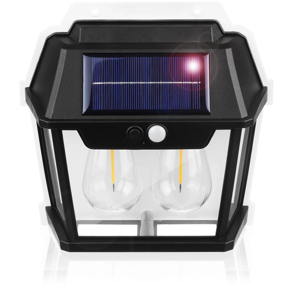 - Leistungsstarke Wandleuchte 600 lm! 2x LED-Filament. Perfekte Ausleuchtung des Raumes. Eingebauter Bewegungs- und Dämmerungssensor. Hocheffizientes Solarpanel. Einfache Montage. 3 Modi, automatisches Einschalten. IP65-Beständigkeit. Einfache Montage.