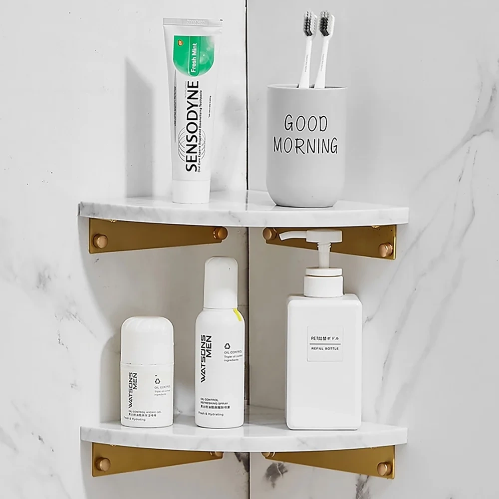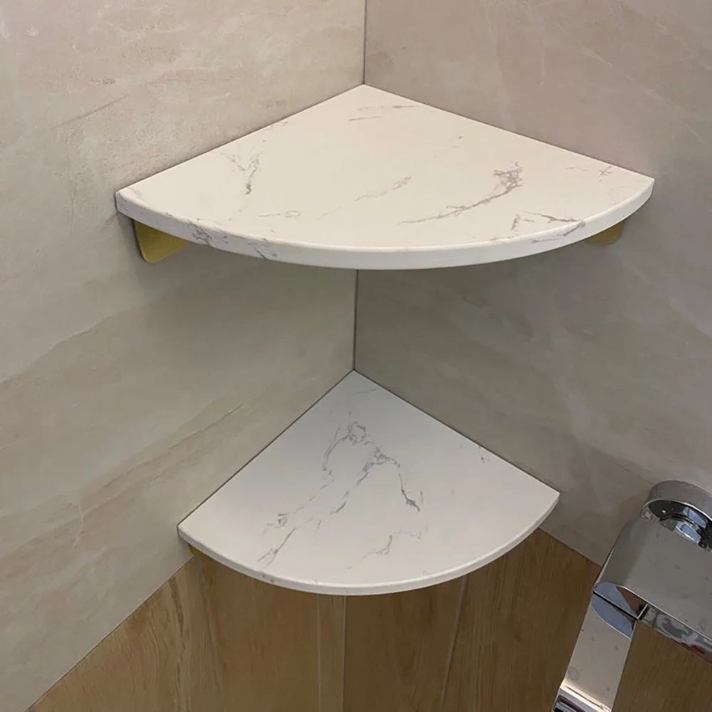 Eckregal für Badezimmer | Marmorablage für Kosmetik | weiß | TBD-211-WHITE-MRBL