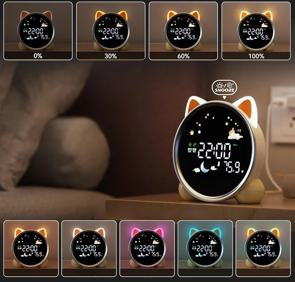 Mit intelligenten Tag- und Nachtmodi, Doppelalarm, Schlummerfunktion sowie der Möglichkeit, Klänge abzuspielen und die Farben zu wechseln, ist es nicht nur praktisch, sondern auch ein beliebter Begleiter für Ihr Kind.
